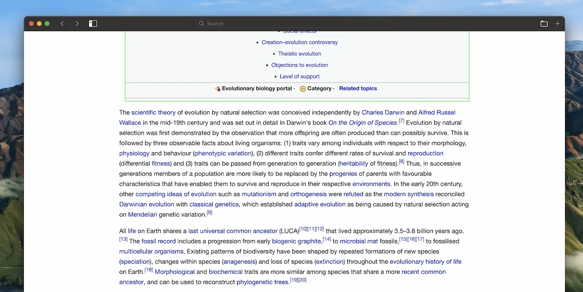 Now that you've downloaded all of Wikipedia, you can sleep easy knowing that, even if you forget to pay your internet bill, you'll still be able to read about how the theory of evolution was actually independently conceived by Alfred Russel Wallace even though Charles Darwin is the one who gets all the credit: